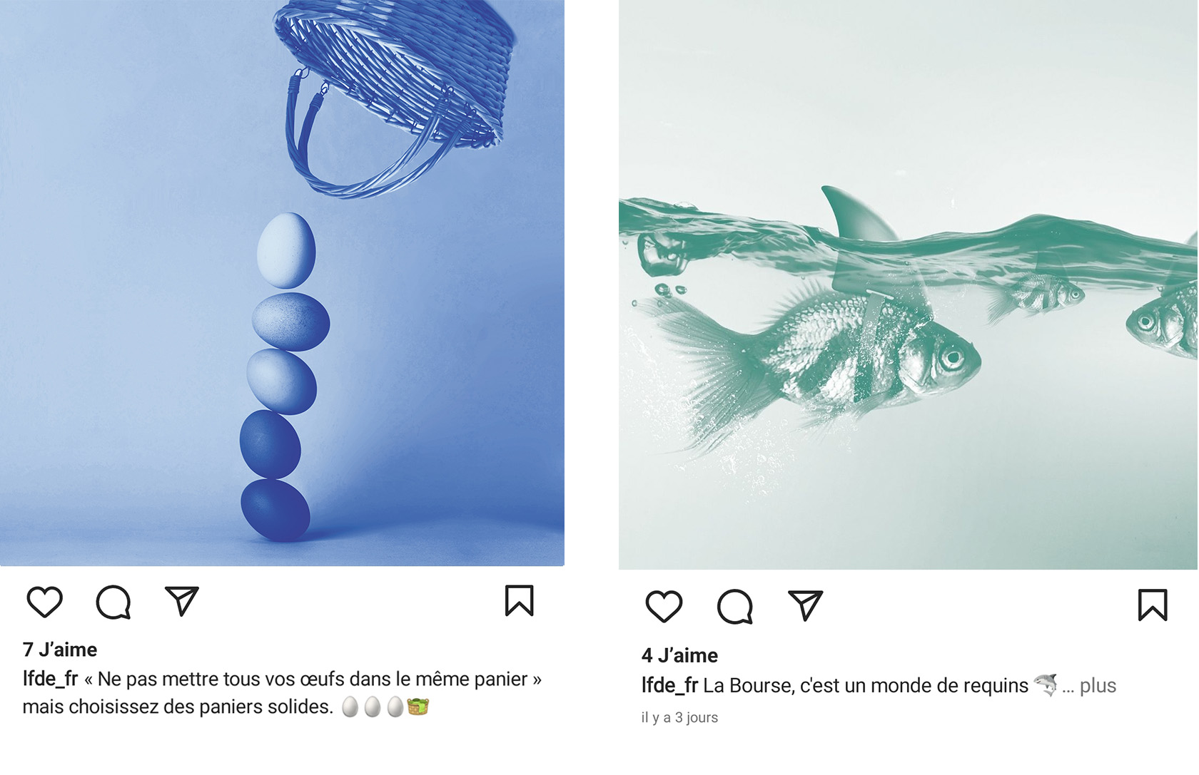 Designed at La Financière de l'Échiquier, these series of educational posts enliven the company's LinkedIn and Instagram accounts: the monochrome photos highlight financial expressions, Did you know animations recount anecdotes about finance, while LFDE se découvre & meetLFDE are designed to showcase the company by presenting its teams and expertise behind the scenes.