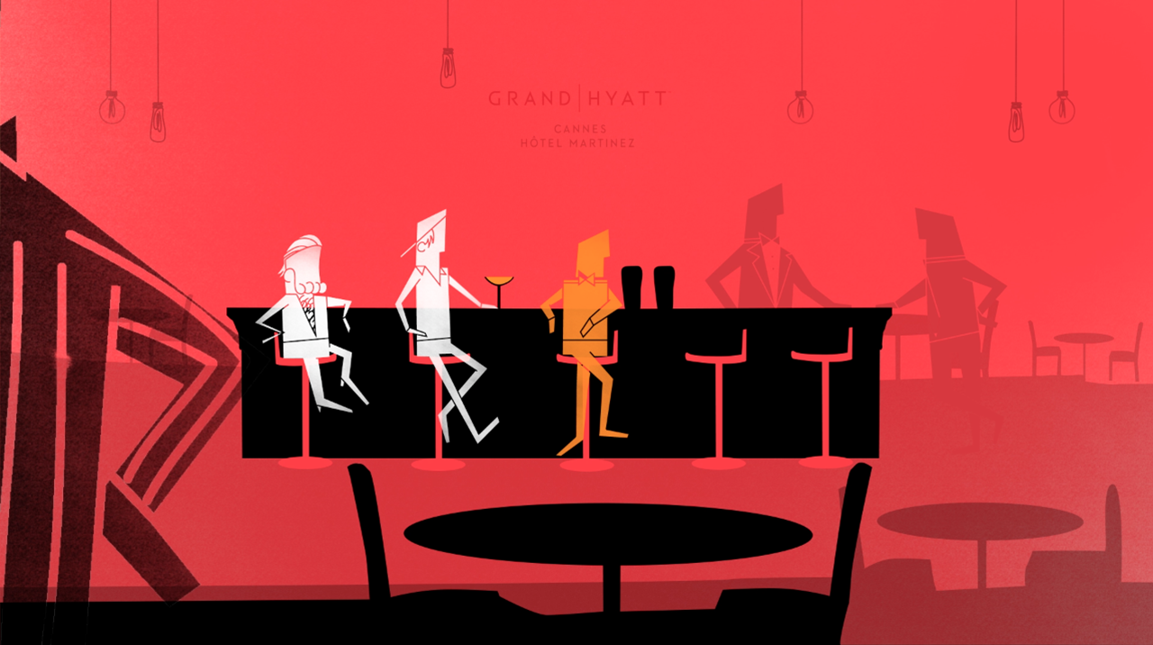 Agency's self-promotional mission for their appearance at the Cannes International Festival of Creativity. Over there, the Martinez hotel is the place to meet. Through an animated film and a press announcement, the idea was to create a mysterious identity to invite professionals and arouse their interest.